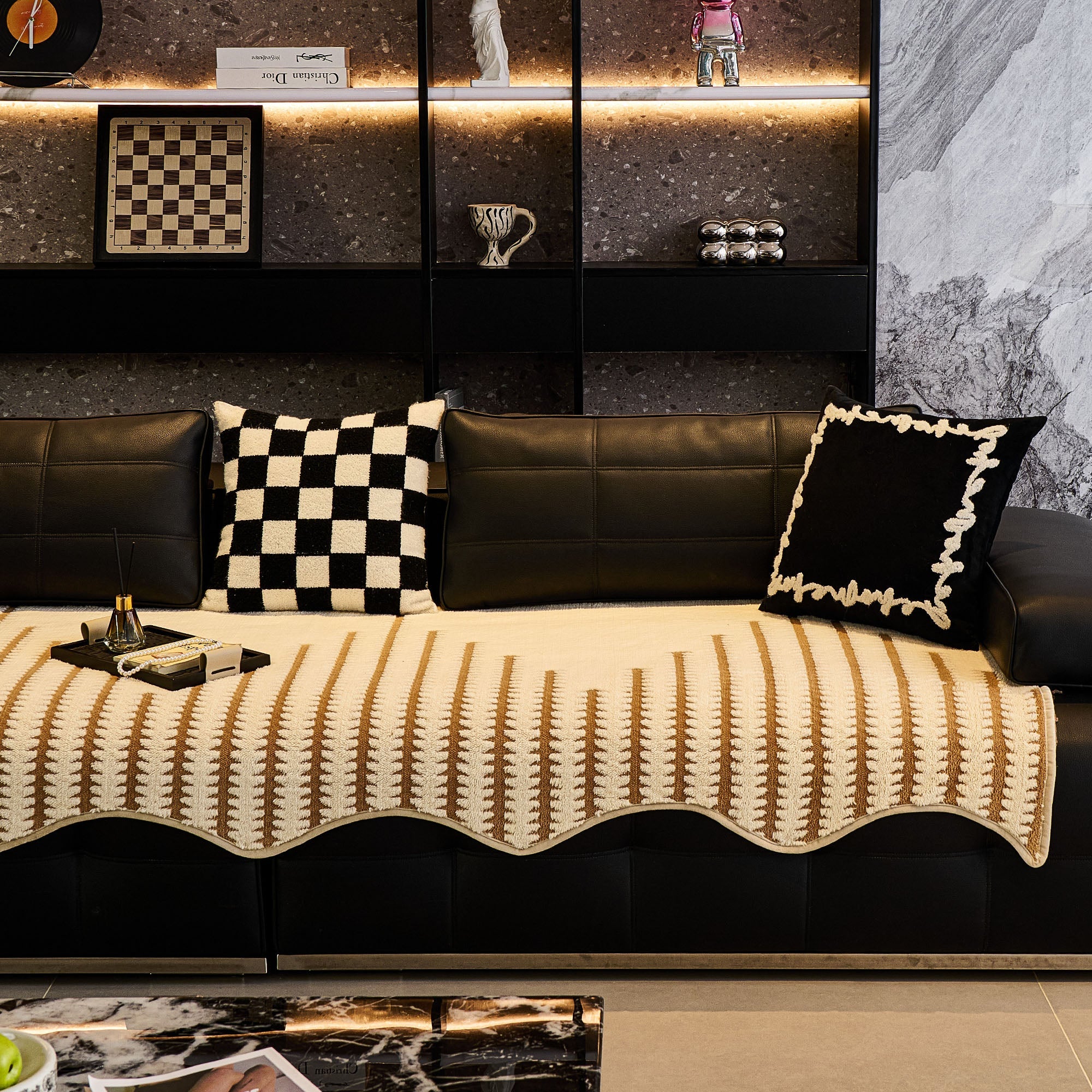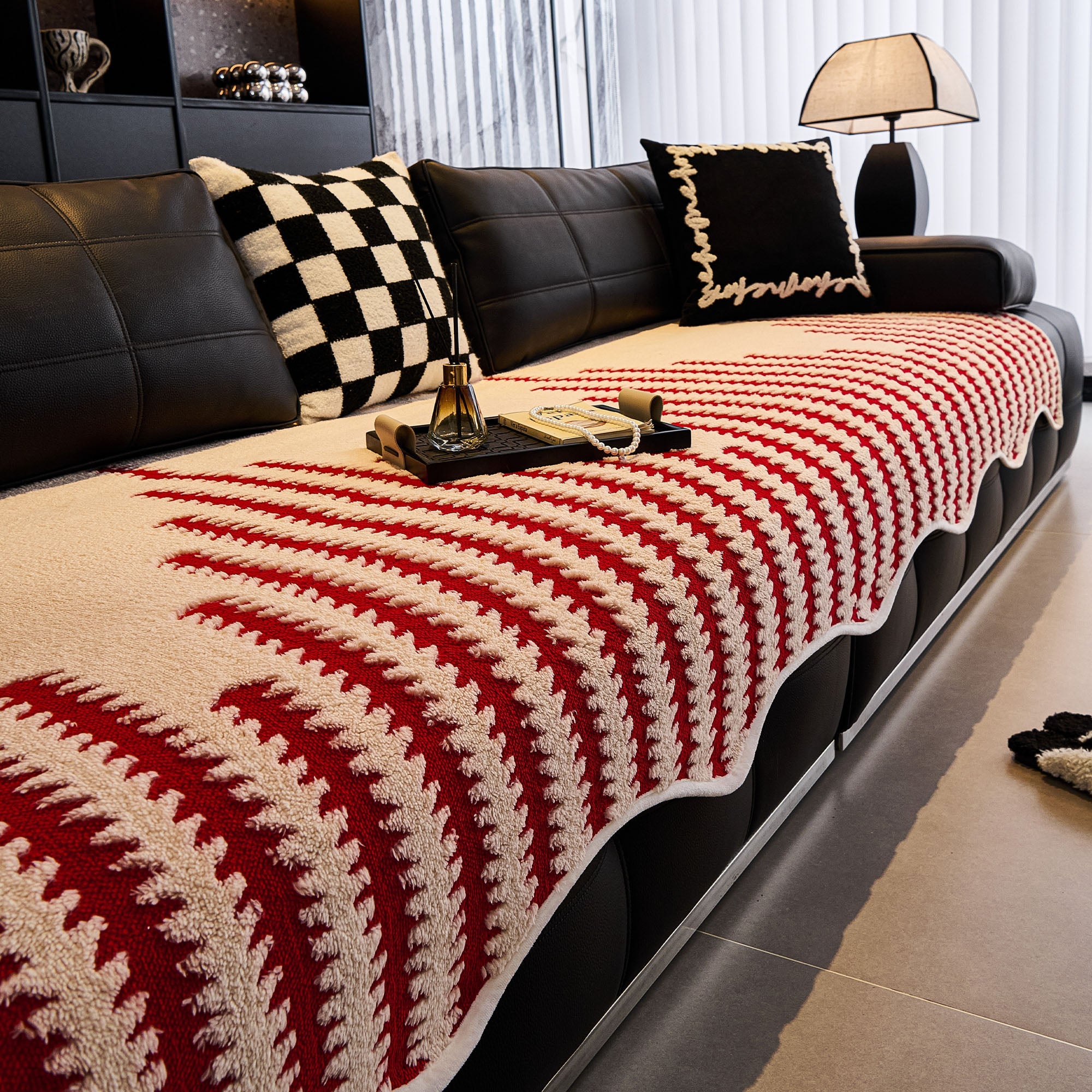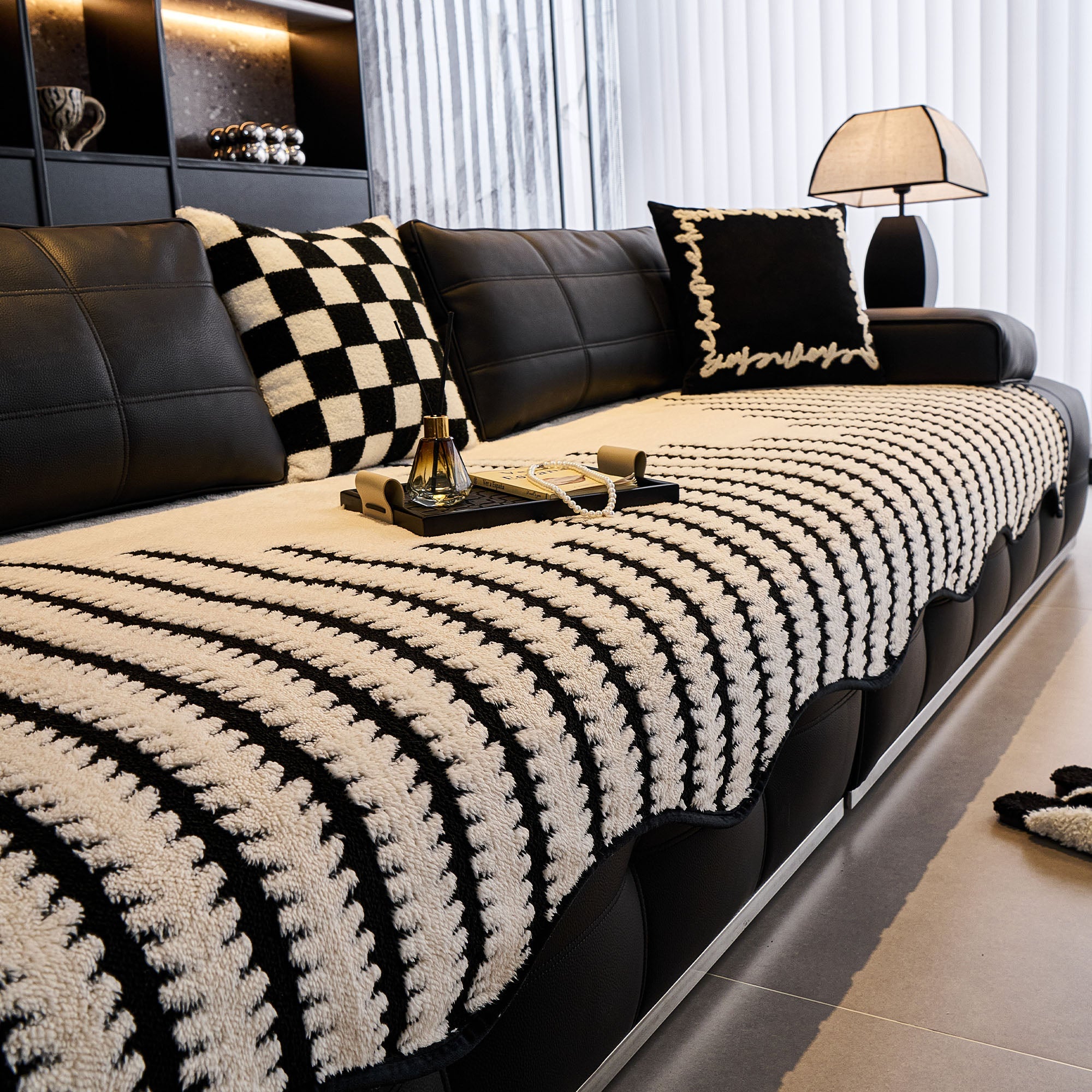 Luksusowy, pluszowy pokrowiec na sofę Tuft Stripe, antypoślizgowy