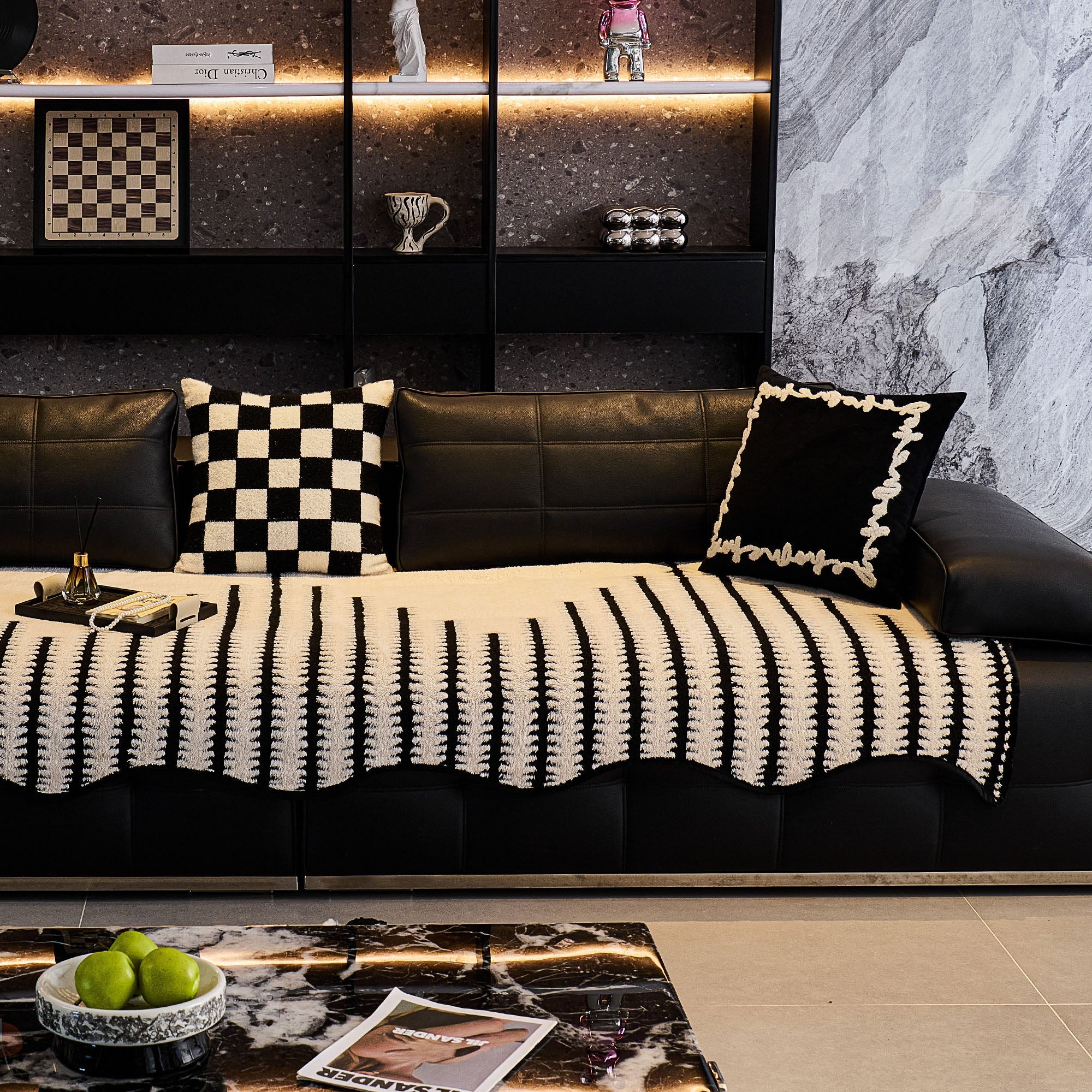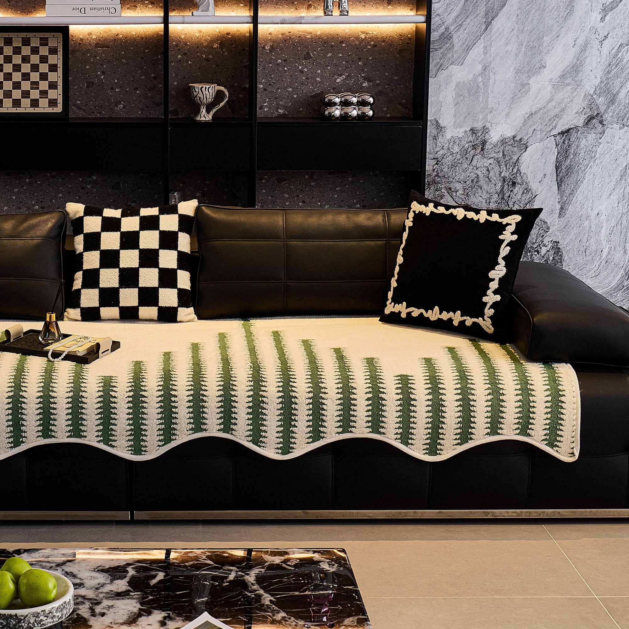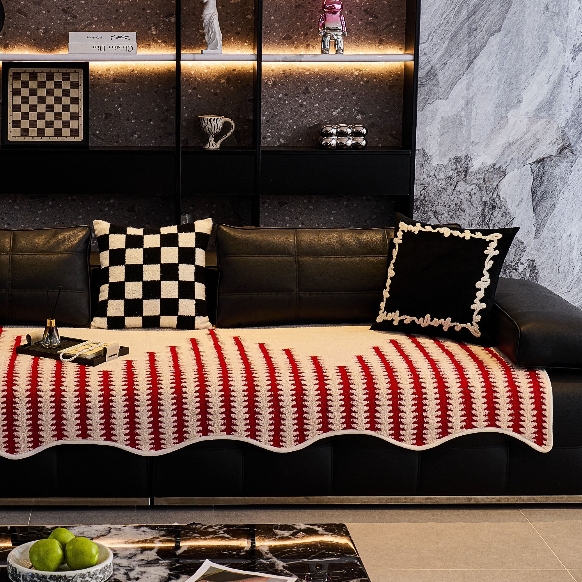 Luksusowy, pluszowy pokrowiec na sofę Tuft Stripe, antypoślizgowy