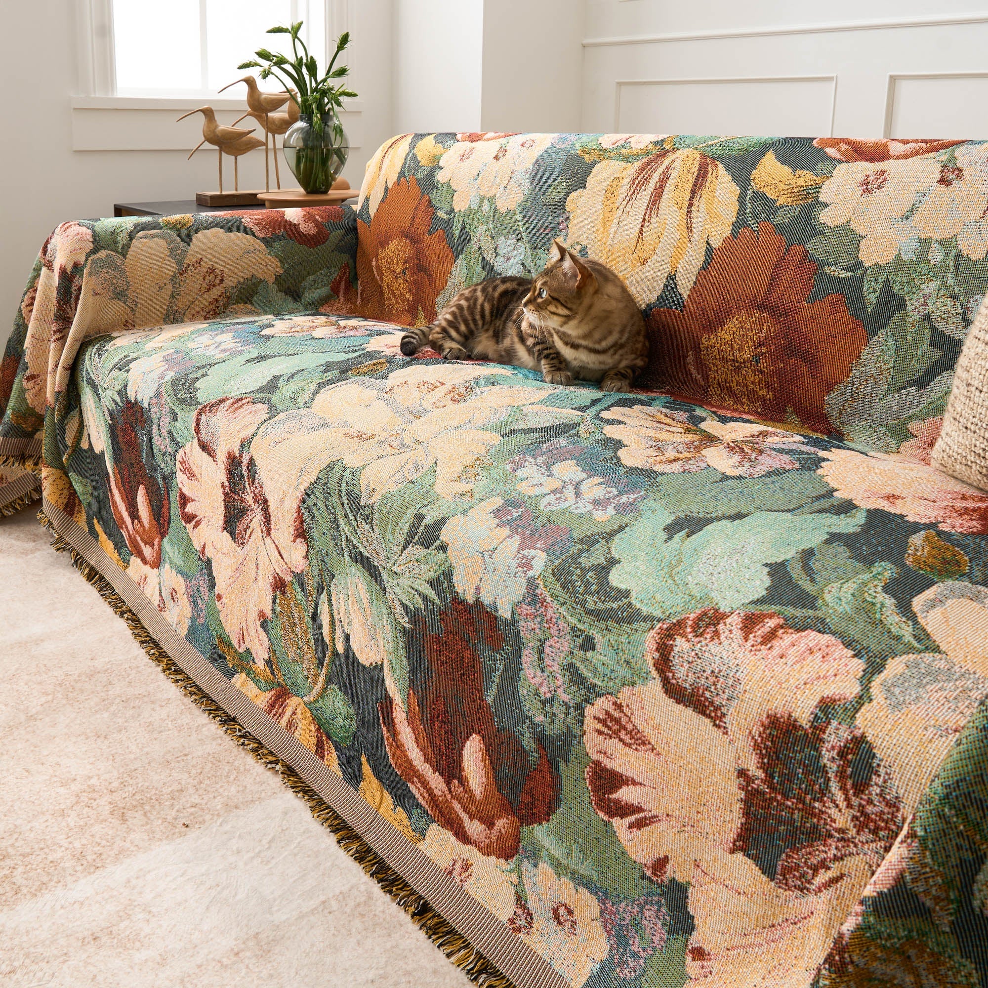 Przekształć swój salon w tętniącą życiem oazę dzięki pokrowcowi na sofę Vintage Floral Garden. Ozdobiony bogatymi, kwiatowymi wzorami przypominającymi gobeliny, pokrowiec ten wnosi ciepło i charakter do każdego wnętrza. Wykonany z wytrzymałej i miękkiej tkaniny, idealnie chroni Twoją sofę, dodając jej jednocześnie nuty klasycznej elegancji.
